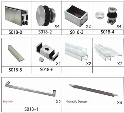 S018-180° Комплект фурнитуры для прямой раздвижной душевой кабины две двери