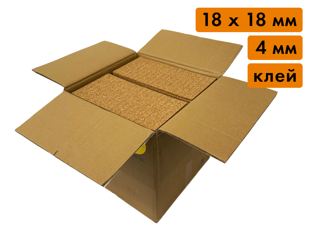 Пробковая прокладка в листах, размер 18х18 мм, толщина 4 мм (клеящий слой, 28'000 шт)
